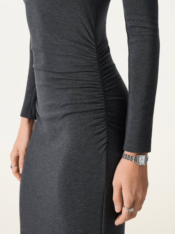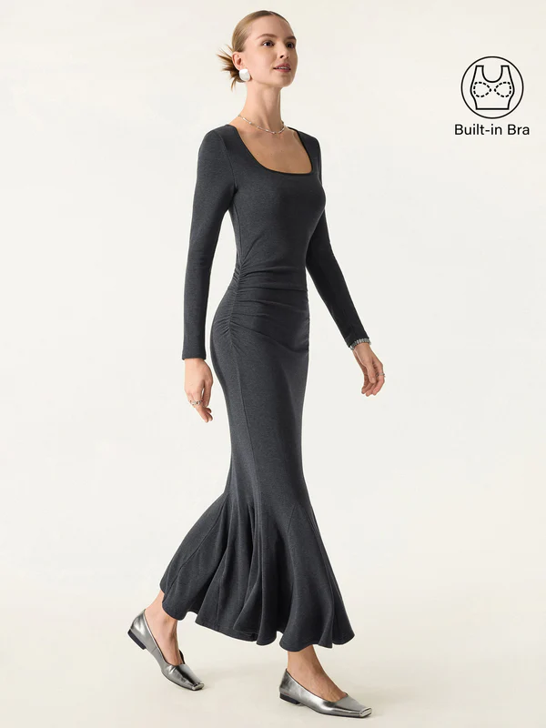 Sie werden dieses Kleid für Ihre festlichen Anlässe lieben. Es verfügt über eine geraffte Taille, die jede Kurve betont. Die ausgestellte Meerjungfrauensilhouette und der weiche, angeraute Stoff sorgen für einen stilvollen, femininen Look, der sich so gut anfühlt, wie er aussieht.