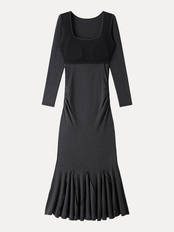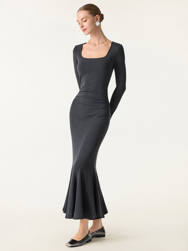 OGL - ProWärm Ausgeh-Maxikleid im Meerjungfrauenschnitt mit eckigem Ausschnitt, seitlichen Raffungen und Trägeroberteil 250925-2858W44