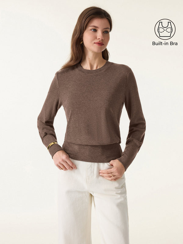 Dieses gehobene Basic mit seiner entspannten Passform schmeichelt mühelos. Der gerippte Saum und die Bündchen verleihen Eleganz und betonen dezent die Taille, während herausnehmbare BH-Polster für bequemen Tragekomfort und Halt im Alltag sorgen.