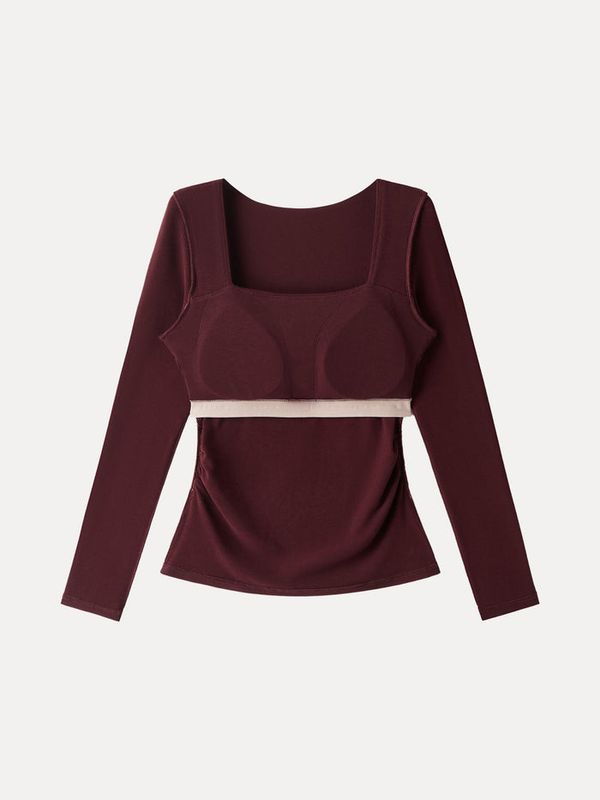 Sie werden dieses Oberteil mit seinem quadratischen Ausschnitt und den seitlichen Raffungen lieben, die eine universell schmeichelhafte Form schaffen. Die hohe Hüftlänge und die langen Ärmel machen es zu einem vielseitigen Basic, komplett mit herausnehmbaren BH-Polstern für integrierten Halt.