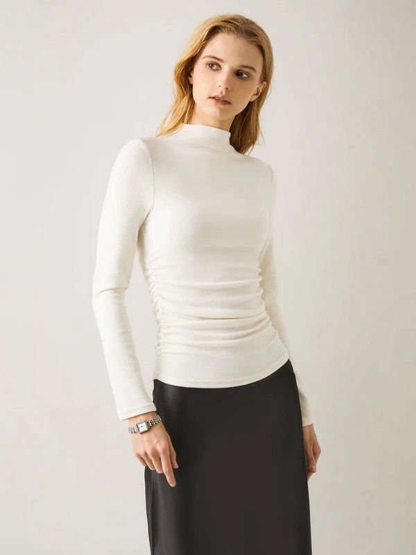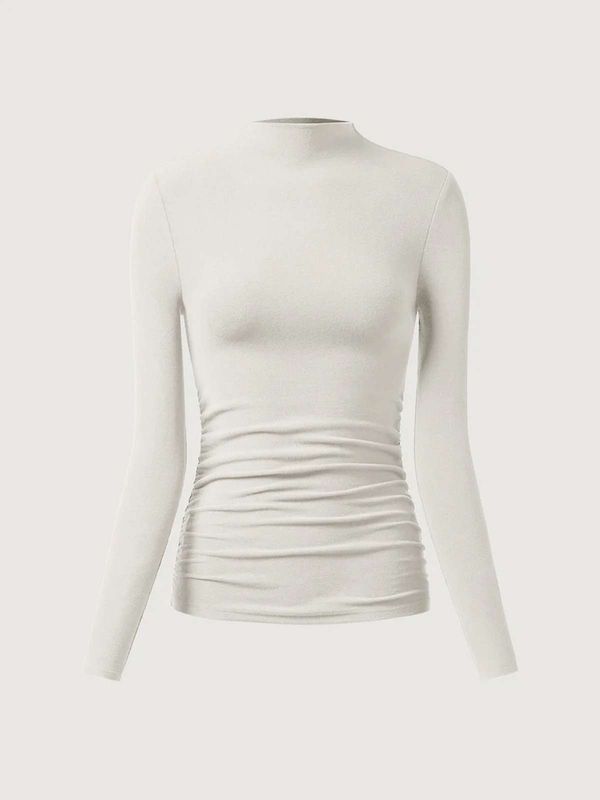 Dieses Eco-Mousse® Thermal Ruched Sides Tuckable Mockneck Top vereint Stil und Funktionalität mühelos und ist ein Must-have für Ihre Garderobe. Die seitlichen Raffungen sorgen für eine schmeichelhafte Passform, die Ihre Silhouette betont, während der Rollkragen ein elegantes und nahtloses Design bietet, das sich perfekt für Lagenlooks oder solo eignet. Sie werden sich selbstbewusst fühlen und gut aussehen, egal wie Sie es tragen.