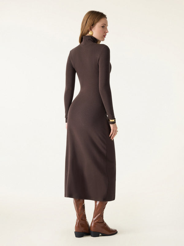 Dieses figurbetonte Midikleid mit Rollkragen und dezenten Raffungen, die die elegante Silhouette betonen, wird Sie begeistern. Dank herausnehmbarer BH-Einlagen bietet es optimalen Tragekomfort und Halt und ist ein vielseitiges Must-have für Herbst und Winter.