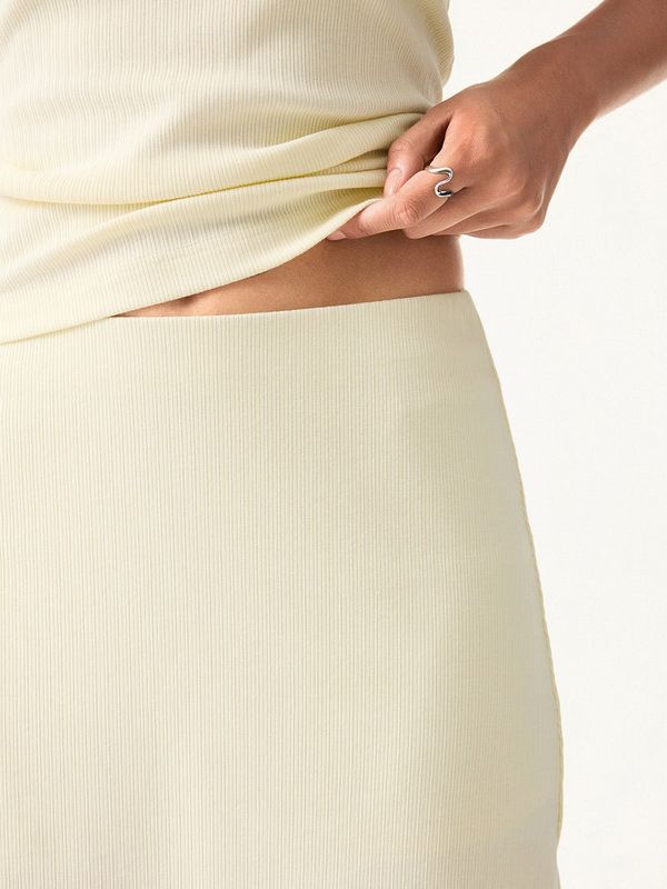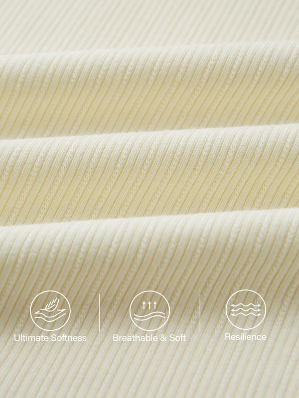 Ein leichter Strickstoff aus Baumwolle, Modal und Elasthan. Er fühlt sich weich an und ist atmungsaktiv. Die zarte Pointelle-Textur verleiht dem Kleidungsstück eine subtile Dimension und verbessert gleichzeitig die Luftzirkulation. So ist es perfekt für den Sommer.