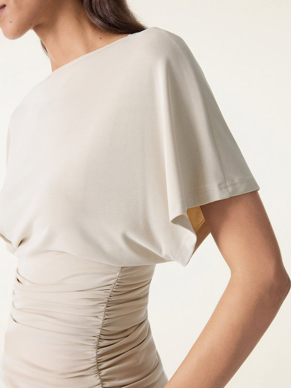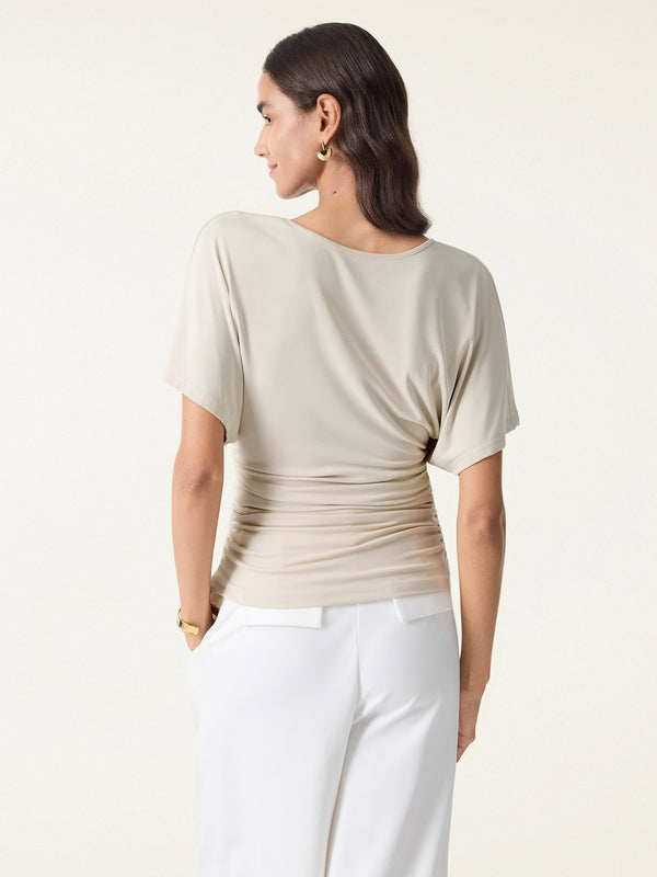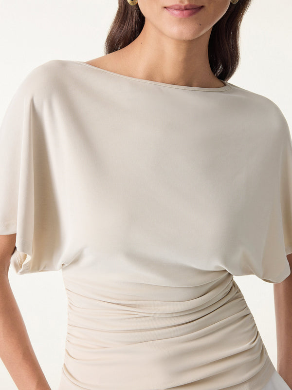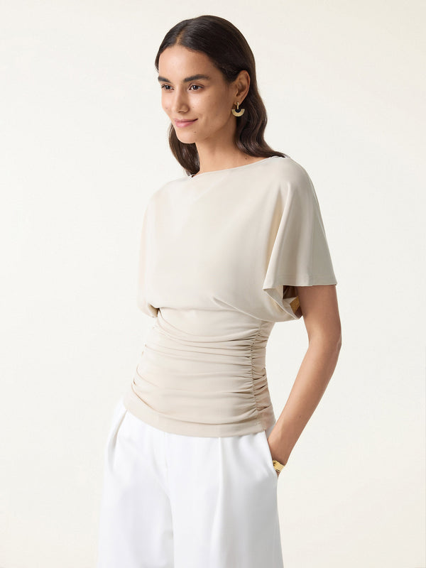 OGL - Sandgewaschen Müheloses Oberteil mit U-Boot-Ausschnitt, Fledermausärmeln und seitlichen Rüschen 250912-2803W24