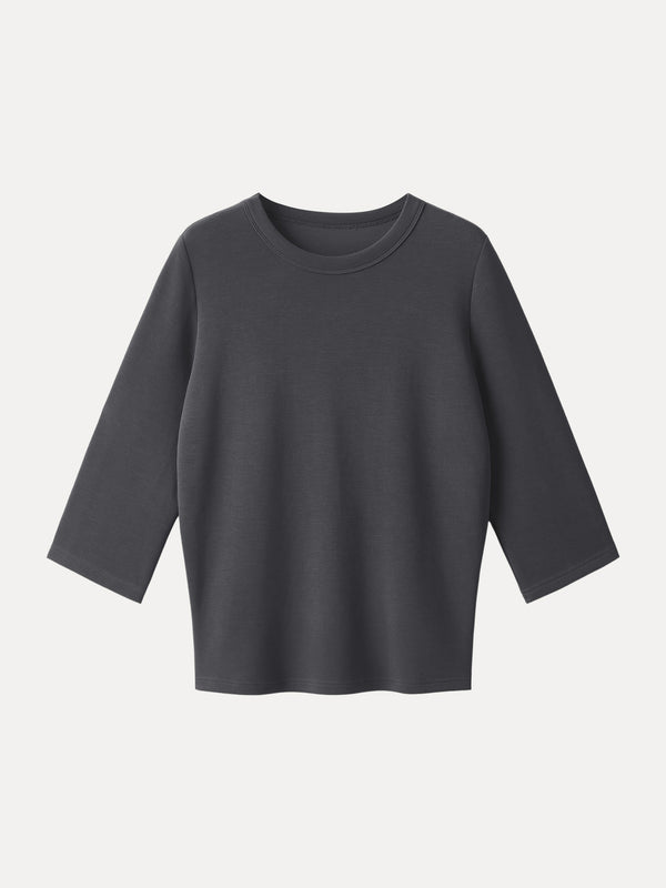 Dieses Oberteil mit normaler Passform ist mühelos schick und einfach zu stylen. Es verfügt über einen klassischen Rundhalsausschnitt und schmeichelnde 3/4-Ärmel. Die hohe Hüftlänge macht es perfekt zum Hineinstecken oder für Lagenlooks und verleiht jedem Look einen lässigen Touch.