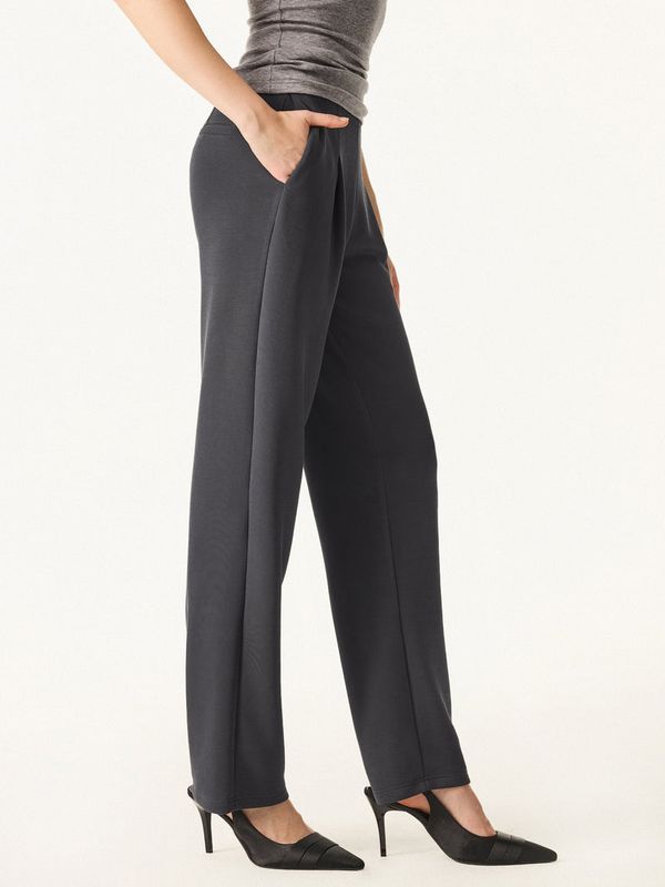 Diese bequeme und elegante Schlupfhose zeichnet sich durch eine schlichte Taille mit flexiblem Gummizug aus. Der gerade Schnitt fällt fließend bis zur vollen Länge und ist ideal für den Alltag – vom Pendeln bis zum Casual Friday. Praktische Taschen für den Alltag runden das Design ab.