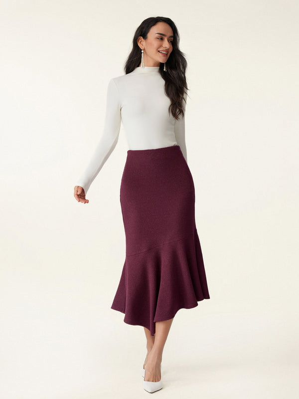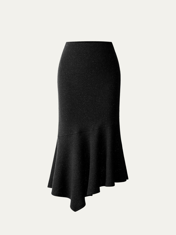 Unser schimmernder, asymmetrischer Meerjungfrauenrock mit Lametta-Muster verleiht jedem Anlass mühelose Eleganz. Mit seiner schmeichelnden, hohen Taille und dem weichen, Lametta-Strickstoff hält er Sie warm und bequem und ist gleichzeitig atmungsaktiv. Der einzigartige, asymmetrische Saum verleiht ihm einen charmanten, edlen Touch und passt wunderbar zu all Ihren Lieblingsoberteilen.