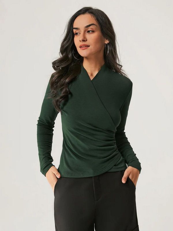 Peppen Sie Ihre Outfits mit unserem Eco-Mousse® Thermo-Langarmshirt auf. Der zeitlose V-Ausschnitt umrahmt elegant das Gesicht, während die seitliche Raffung an der Taille für eine schmeichelhafte Passform sorgt, die Ihre natürlichen Kurven betont. Die schmale Silhouette sorgt für einen eleganten und eleganten Look, der sich sowohl elegant als auch leger kombinieren lässt.