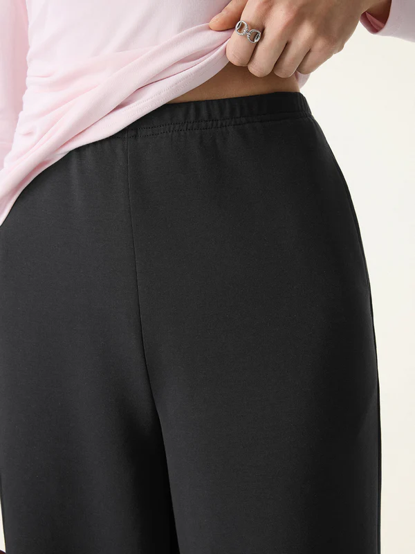 Eine schlichte, alltagstaugliche Hose mit geradem Bein, die bequem zu tragen ist und dennoch elegant wirkt. Der mittelhohe Bund zum Hineinschlüpfen und der schmale Gummizug sorgen dafür, dass der Hosenbund unter Oberteilen nicht aufträgt. Praktische Eingrifftaschen bieten zusätzlichen Komfort, ohne aufzutragen.