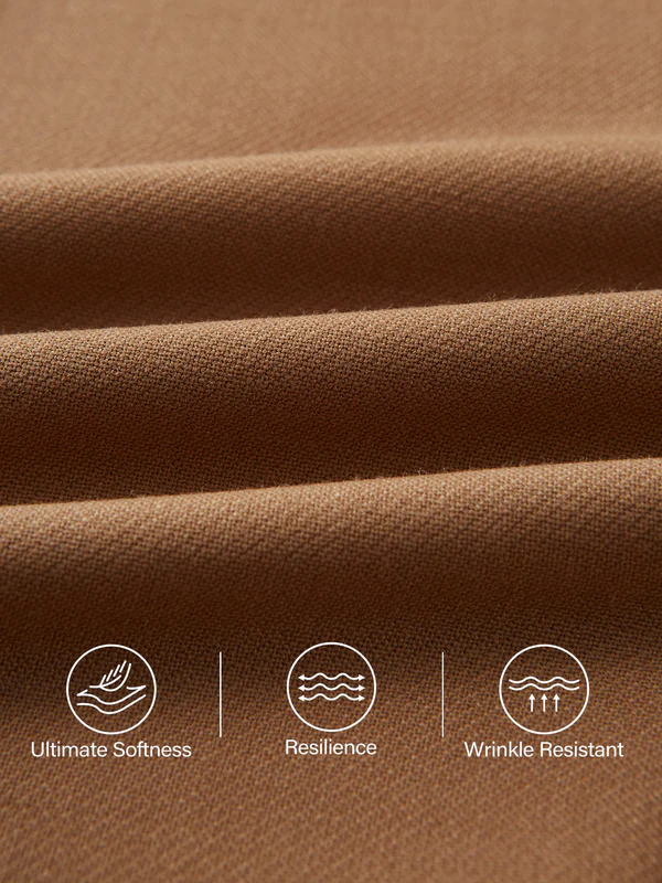 Dieser innovative Stoff vereint die Eleganz feiner Wolle mit der Flexibilität von 4-Wege-Stretch. Er passt sich Ihren Bewegungen an – nie steif, nie eng – und ist somit ideal für stundenlanges Tragen, egal ob am Schreibtisch oder unterwegs. Die glatte, glänzende Oberfläche verleiht jedem Look einen Hauch von Eleganz.