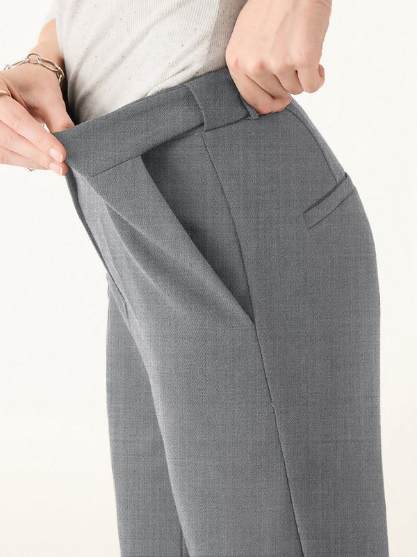 Diese Hose verleiht Ihrer Arbeitsgarderobe einen eleganten, eleganten Look. Der Bund wirkt elegant und tailliert, verbirgt jedoch einen verstellbaren Gummizug für mehr Komfort. Mit Taschen und Gürtelschlaufen ist sie elegant und praktisch zugleich.