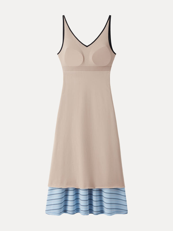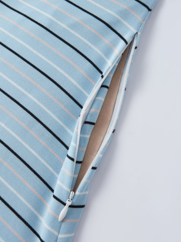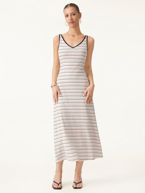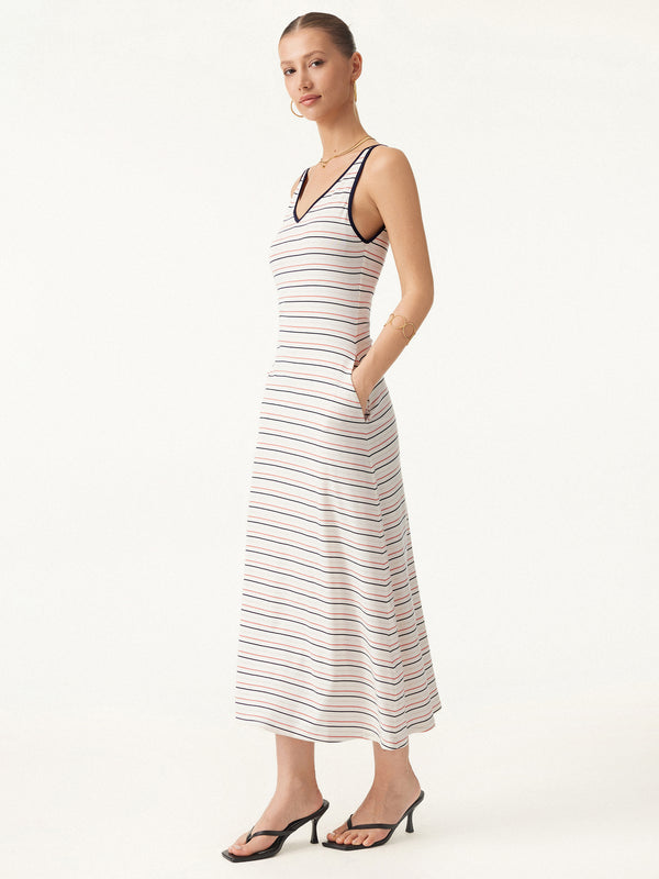 OGL - V-Ausschnitt-Tiefenrücken-gestreiftes Midi-Brami-Kleid mit Taschen 250611-2509W43