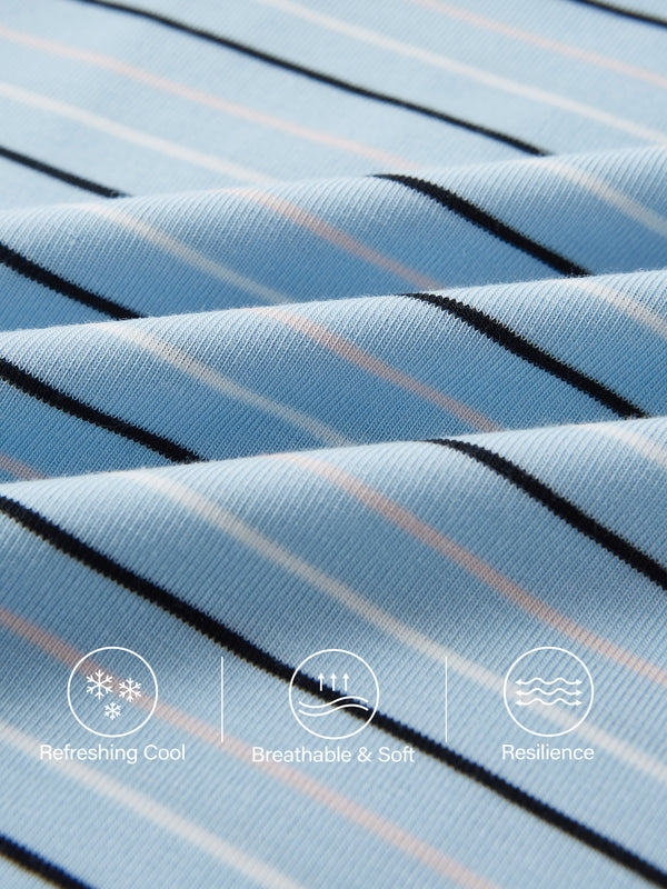 Gefertigt aus Lyocell mit einem Hauch Elasthan bietet der gestreifte Strickstoff ein seidig-weiches, kühles Tragegefühl und angenehme Elastizität. Natürlich atmungsaktiv und sanft zur Haut – ideal für gepflegte Alltagslooks mit leichter, eleganter Ausstrahlung.