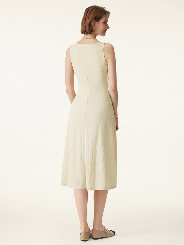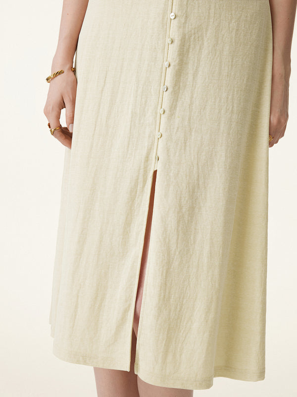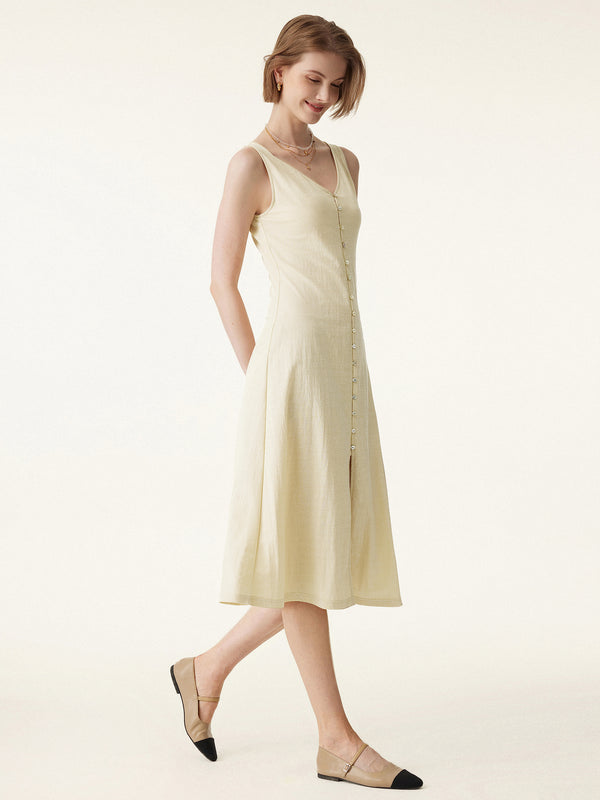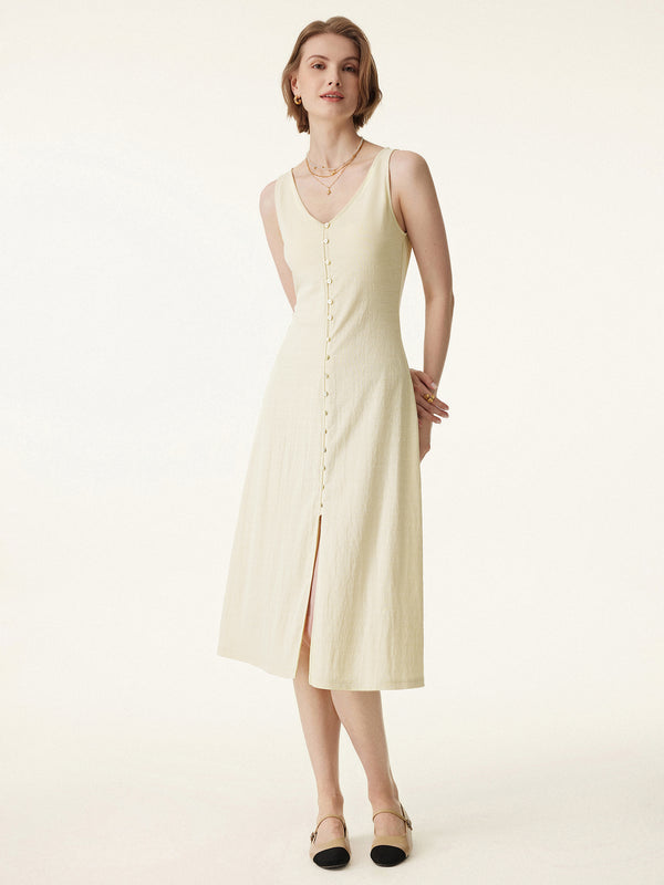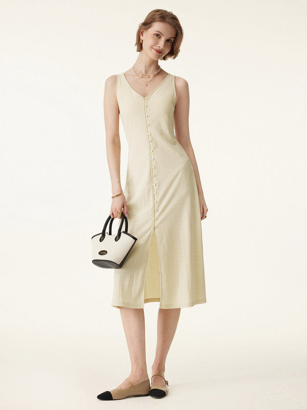 OGLmove - Vielseitig tragbares Midi-Trägerkleid mit V-Ausschnitt und Knopfleiste vorne 250520-2423W43
