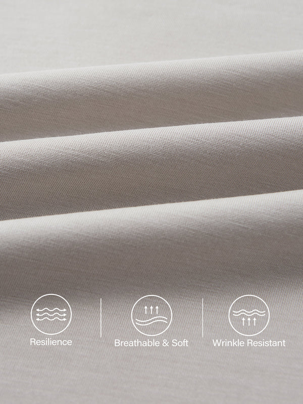 Dieser Doppelstrickstoff bietet flauschige Weichheit und eine samtig-matte Oberfläche. Dank 4-Wege-Stretch und atmungsaktiver Struktur passt er sich Ihren Bewegungen an und behält gleichzeitig einen klaren, modernen Fall. Außerdem ist er knitterarm – für ein gepflegtes Aussehen ohne viel Aufwand.