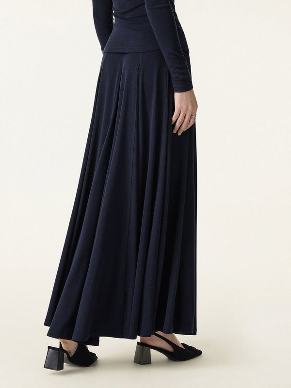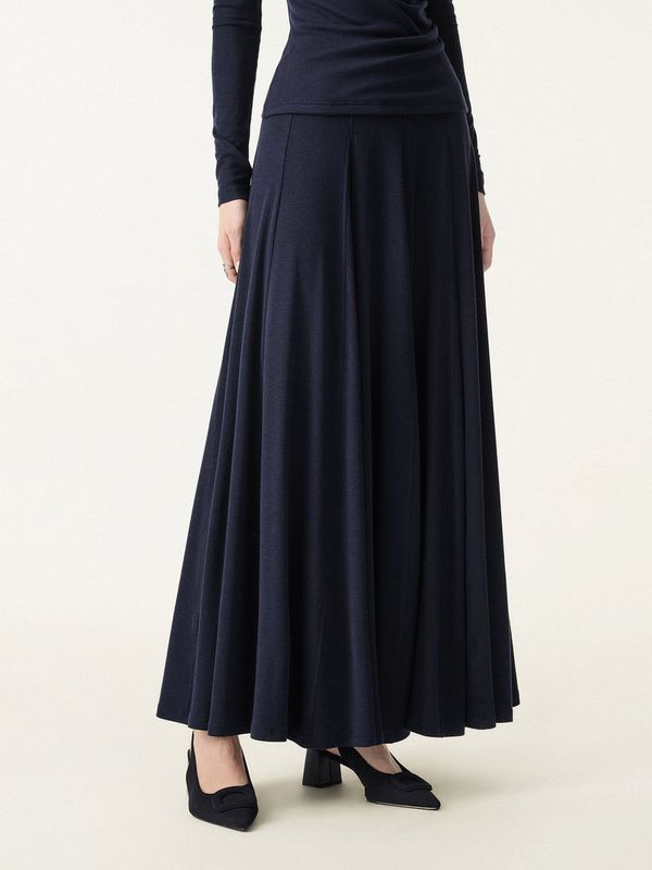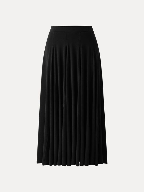 Dieser mittelhohe Rock aus weichem Lyocell-Wollmischgewebe, der sich glatt und gleichzeitig warm anfühlt, wird Sie begeistern. Mit seinem Godet-Saum für anmutige Bewegungen und dem elastischen Bund ist er ein raffiniertes Kleidungsstück, das Komfort und Eleganz perfekt vereint.