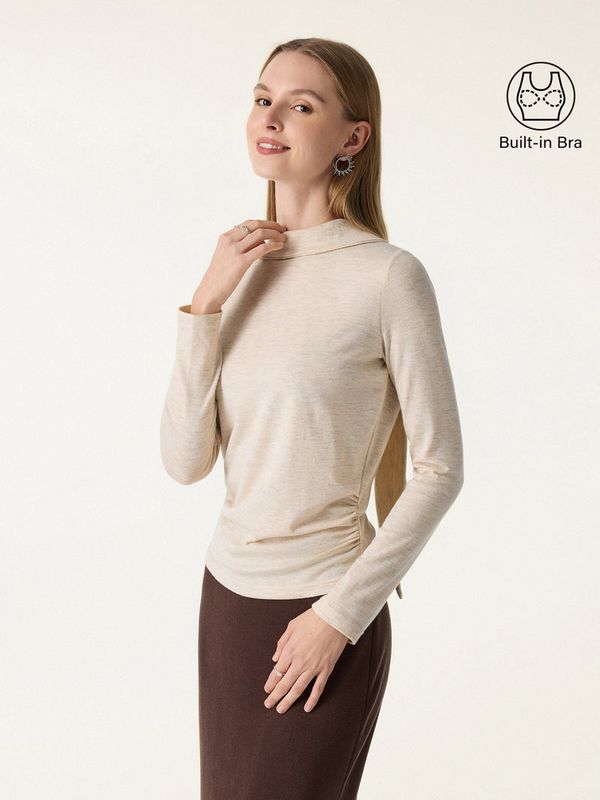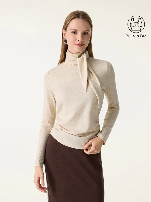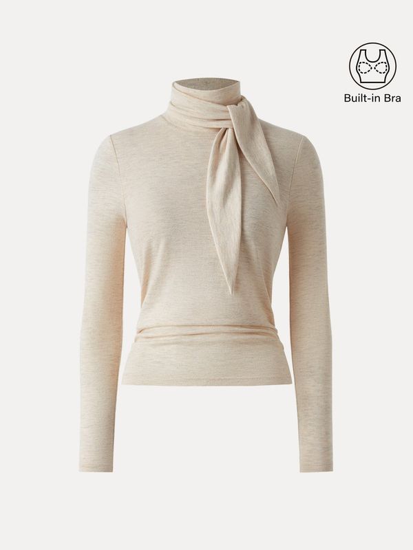 Dieses Top besticht durch einen vielseitigen Ausschnitt mit einem zarten Schaldetail, das ihm eine elegante Note verleiht. Die geraffte Taille schmeichelt der Figur, und die herausnehmbaren BH-Einlagen sorgen für Komfort und Halt – ein wirklich stilvolles Kleidungsstück.
