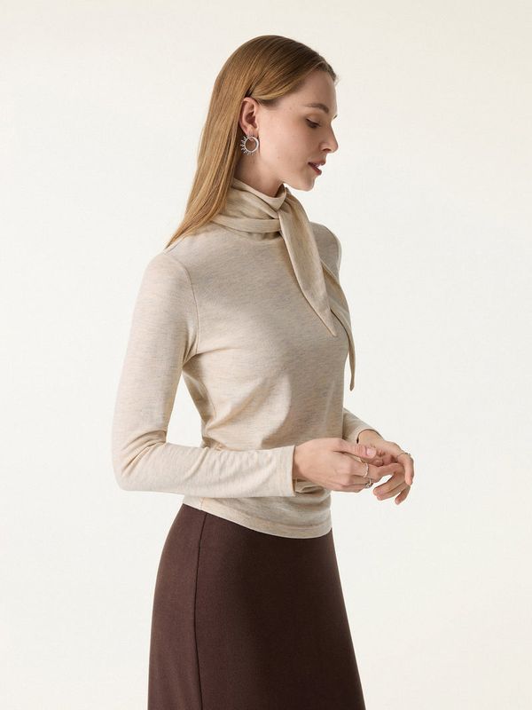 OGL - Wolle Raffbluse mit langen Ärmeln und Schal 251029-2965W22
