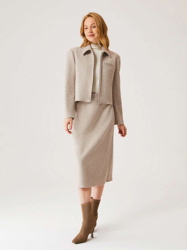 Diese kaschmirähnliche, kurze Jacke mit durchgehendem Reißverschluss ist die ultimative, alltagstaugliche Oberbekleidung mit klassischer, strukturierter Silhouette. Der taillierte Schnitt mit Kragen verleiht dem kaschmirweichen Stoff eine coole, kastige Form, die jedes Outfit aufwertet. Kombinieren Sie sie mit dem passenden Rock für ein raffiniertes Outfit.
