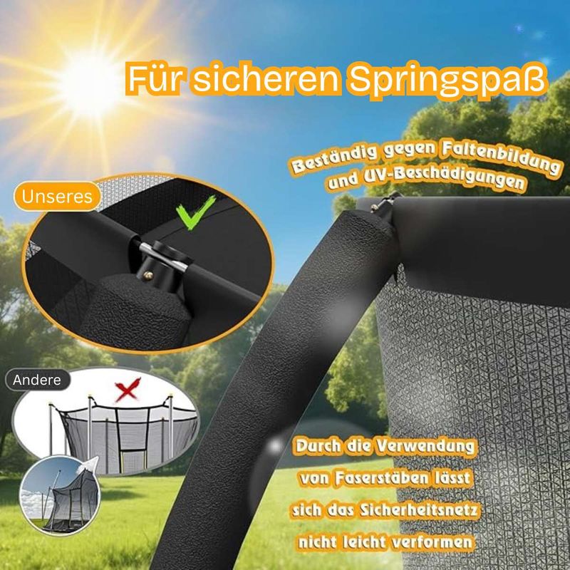 Dieses Trampolin vereint Sicherheit und Spaß für die ganze Familie.